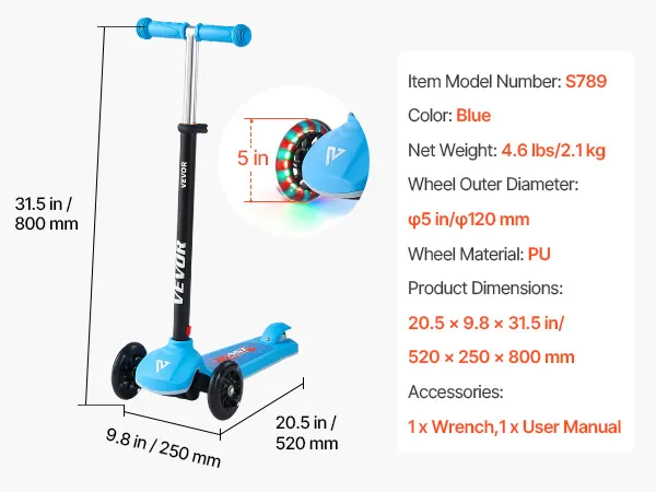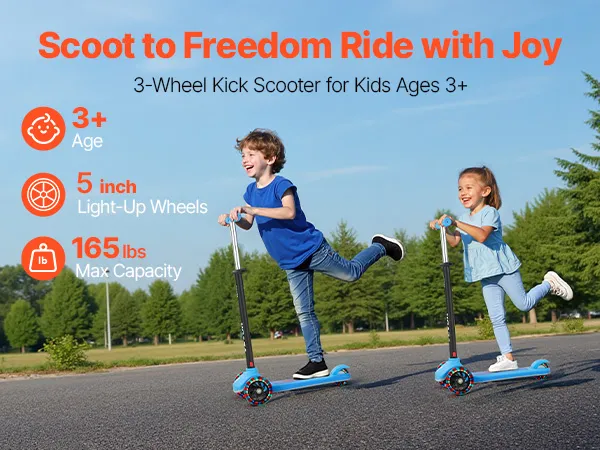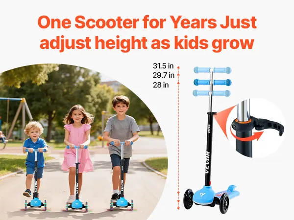 Hulajnoga VEVOR (3 koła) dla dzieci w wieku od 3 lat, hulajnoga miejska dla dzieci ze świecącymi kołami, regulowaną wysokością kierownicy, antypoślizgową platformą i lekką aluminiową ramą, hulajnoga dla dzieci do 75 kg, niebieska