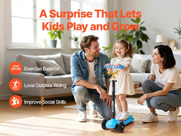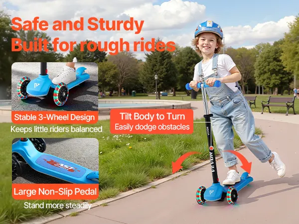 Ta hulajnoga dla dzieci została zaprojektowana dla dzieci w wieku od 3 lat, zapewniając im aktywną zabawę. Jej solidna konstrukcja i duże koła zapewniają płynną jazdę zarówno w domu, jak i na zewnątrz, dając rodzicom poczucie bezpieczeństwa. Układ kierowniczy z pochylanym układem kierowniczym sprzyja rozwojowi równowagi i koordynacji, a początkujący mogą od razu opanować jazdę.