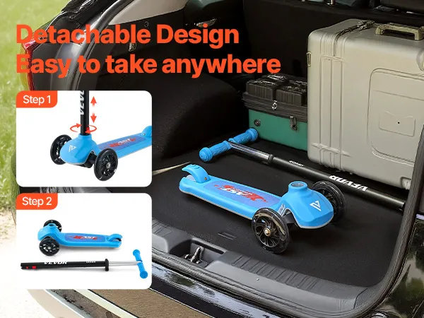 Bezpieczna jazda i możliwość odpięcia: Szeroki, antypoślizgowy podnóżek hulajnogi zapewnia dodatkową stabilność. Trójkołowa konstrukcja pomaga dzieciom utrzymać równowagę i pozycję wyprostowaną. Hulajnogę można szybko odpiąć, jest lekka i dzięki temu łatwa do przenoszenia lub przechowywania w bagażniku samochodu.
