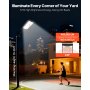 Jasna solarna lampa uliczna: Wyposażona w 5730 wysokowydajnych diod LED, ta zewnętrzna solarna lampa uliczna o mocy 8000 W zapewnia mocną, szerokokątną wiązkę światła o kącie 240° i imponującej mocy 450 000 lumenów. Rozświetl każdy zakątek swojego ogrodu.