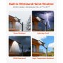 Wysoka odporność na warunki atmosferyczne: Ta lampa solarna jest wykonana z wysokiej jakości materiału i charakteryzuje się solidną, odporną na stłuczenia konstrukcją. Dzięki klasie ochrony IP65 jest wodoodporna i niezawodnie działa w deszczu, śniegu i wysokich temperaturach.