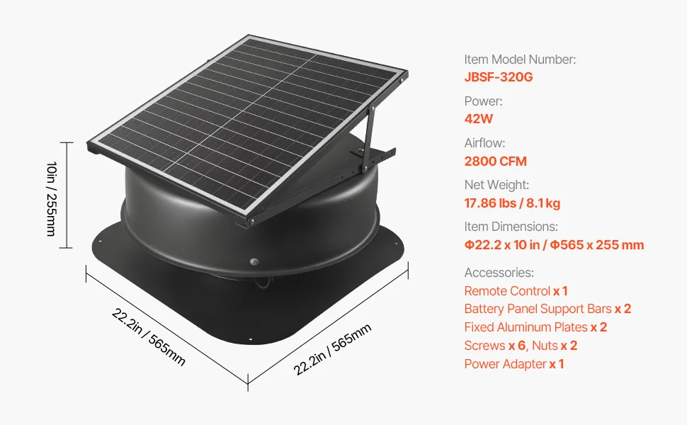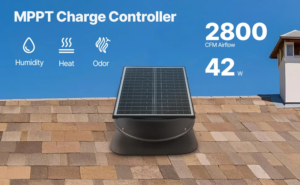 Energia słoneczna MPPT: Czy na Twoim poddaszu robi się zbyt gorąco? Sterownik MPPT o mocy 42 W maksymalizuje wykorzystanie światła słonecznego do wyciągania gorącego powietrza z poddasza. Wyposażone w bezszczotkowy silnik prądu stałego urządzenie oferuje wydajność chłodzenia do 2800 CFM / 79287 L/min. Nasz wentylator solarny na poddasze znacznie obniża koszty chłodzenia i nadaje się do dachów metalowych i murowanych.
