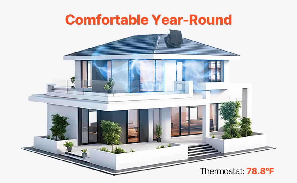 Szerokie zastosowanie: wentylator solarny na poddasze jest kompatybilny zarówno z dachami metalowymi, jak i murowanymi. Niezależnie od tego, czy jesteś doświadczonym majsterkowiczem, czy certyfikowanym profesjonalistą, instalacja jest łatwa. Posiada również funkcję kontroli temperatury, która włącza się, gdy temperatura w pomieszczeniu przekroczy 26°C i wyłącza się, gdy spadnie poniżej 26°C.