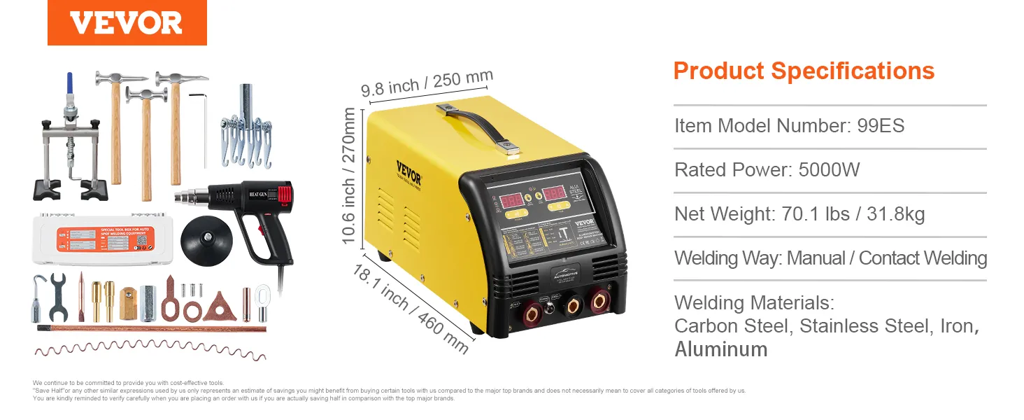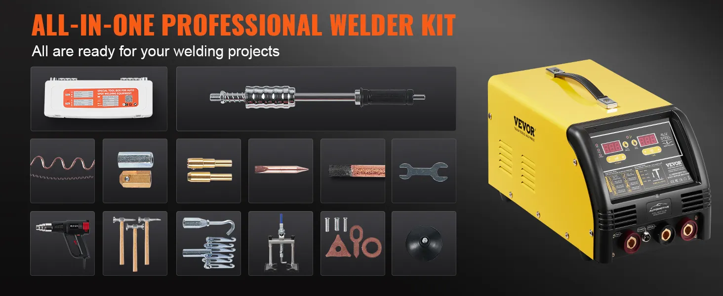 Zestaw do naprawy wgnieceń AL/Fe VEVOR Dual Dent Spotter Deluxe, spawarka 5 kW z automatycznym/ręcznym spawaniem i 10 trybami, spawarka punktowa do naprawy stalowych i aluminiowych części samochodowych
