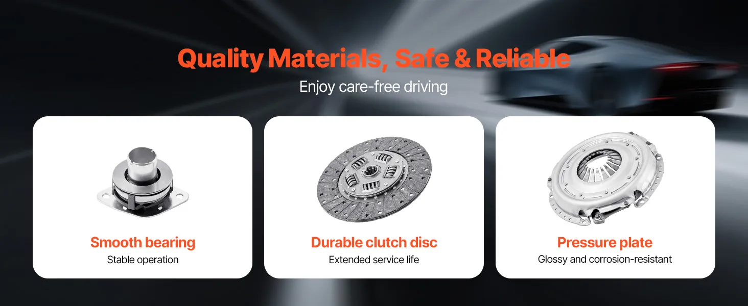 Ten oryginalny zestaw sprzęgła wykonany jest z wysokiej jakości materiałów – wytrzymałych łożysk stalowych, odpornych na wysoką temperaturę tarcz sprzęgła i odpornych na korozję płyt dociskowych. Został zaprojektowany z myślą o długotrwałej wydajności i bezproblemowej jeździe.
