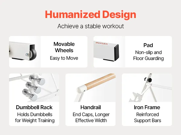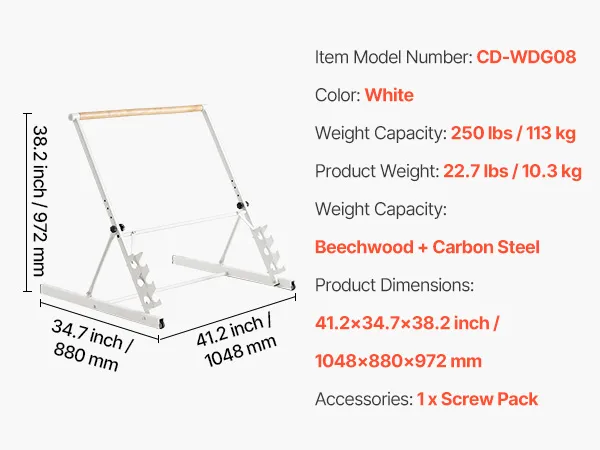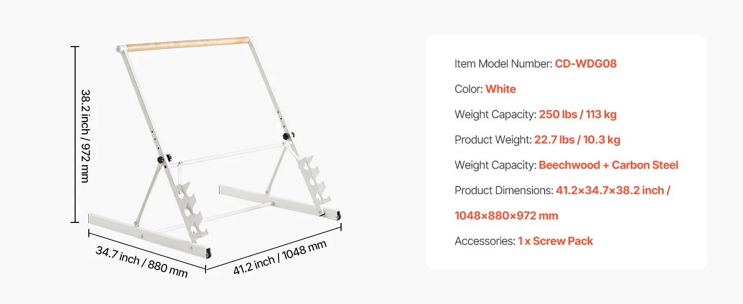 Wysokiej jakości materiał: Ten drążek baletowy wykonany jest z wysokiej jakości stalowej ramy i gładkiej drewnianej poręczy. Wyposażony jest w elementy montażowe i wytrzymuje obciążenie do 113 kg (250 funtów). Antypoślizgowe podkładki zapewniają stabilność. Poręcz posiada zaślepki, które zwiększają jej szerokość.