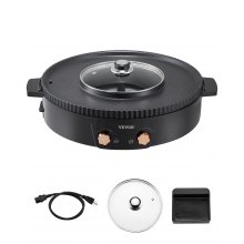 VEVOR Hot Pot z grillem, 2200 W, 2 w 1, elektryczny grill bezdymny i garnek, koreański BBQ Shabu Hot Pot z oddzielną podwójną kontrolą temperatury i patelniami nieprzywierającymi