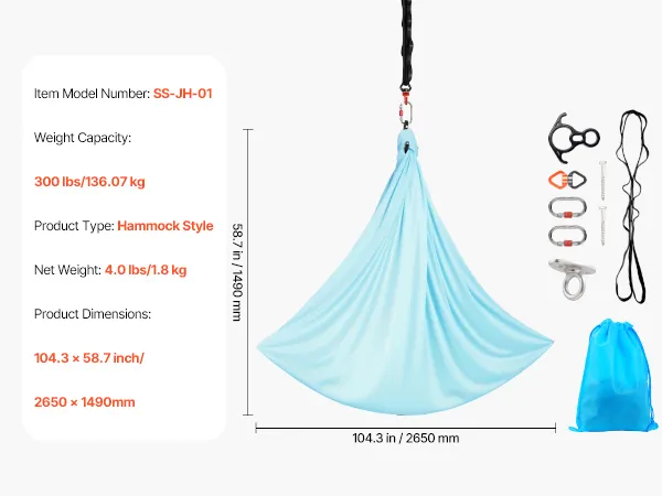 Ten hamak do jogi powietrznej z jedwabiu z huśtawką został zaprojektowany z myślą o łatwym rozkładaniu. W zestawie znajdują się antypoślizgowe pokrowce, materiał nadający się do prania w pralce oraz matowy worek z polietylenu z etykietą ostrzegawczą. Szybki montaż usprawnia jogę i pozwala na płynną praktykę oraz relaks w dowolnym miejscu i czasie.