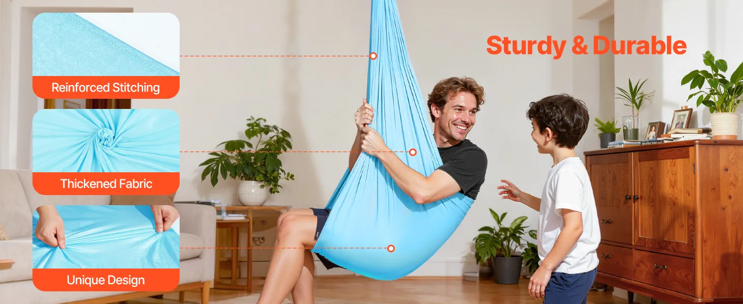Wysoka nośność: Dzięki nośności 136,07 kg (300 funtów) ta huśtawka z jedwabiu jest odpowiednia zarówno dla dzieci, jak i dorosłych. Dzięki solidnej konstrukcji użytkownicy mogą bezpiecznie wykonywać inwersje i obroty. Zapewnia stymulację sensoryczną i wspólną, rodzinną zabawę, gwarantując radosną zabawę i długotrwałą radość.