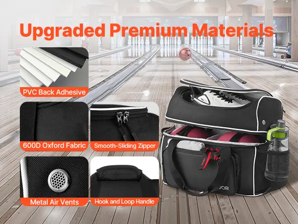 Wytrzymały materiał: Ta torba do gry w kręgle wykonana jest z tkaniny Oxford 600D z powłoką PVC i posiada od spodu panel z polietylenu o grubości 5 mm, odporny na uderzenia. Wzmocnione szwy i metalowe zamki zapewniają trwałość podczas częstego użytkowania i transportu na duże odległości.