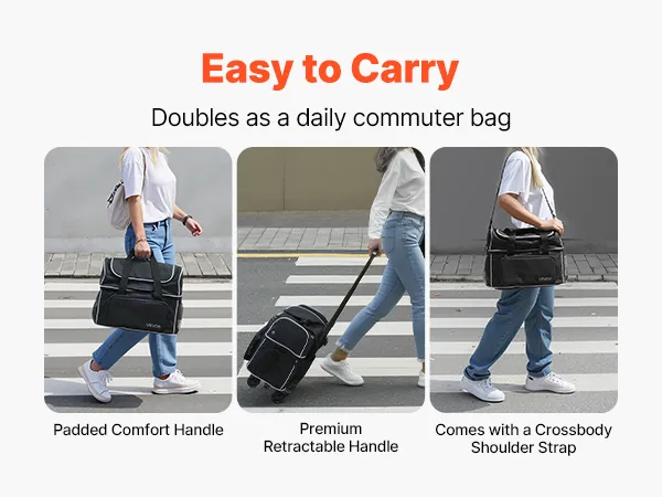 Łatwa w przenoszeniu: Dzięki kółkom o szerokości 6,1 cm (2,4 cala) i pięciu obrotowym łożyskom 360°, ta torba do kręgli na kółkach z łatwością poradzi sobie na trudnych nawierzchniach. Regulowany pasek na ramię, rączka do ciągnięcia i zapięcie na rzepy oferują trzy opcje noszenia.
