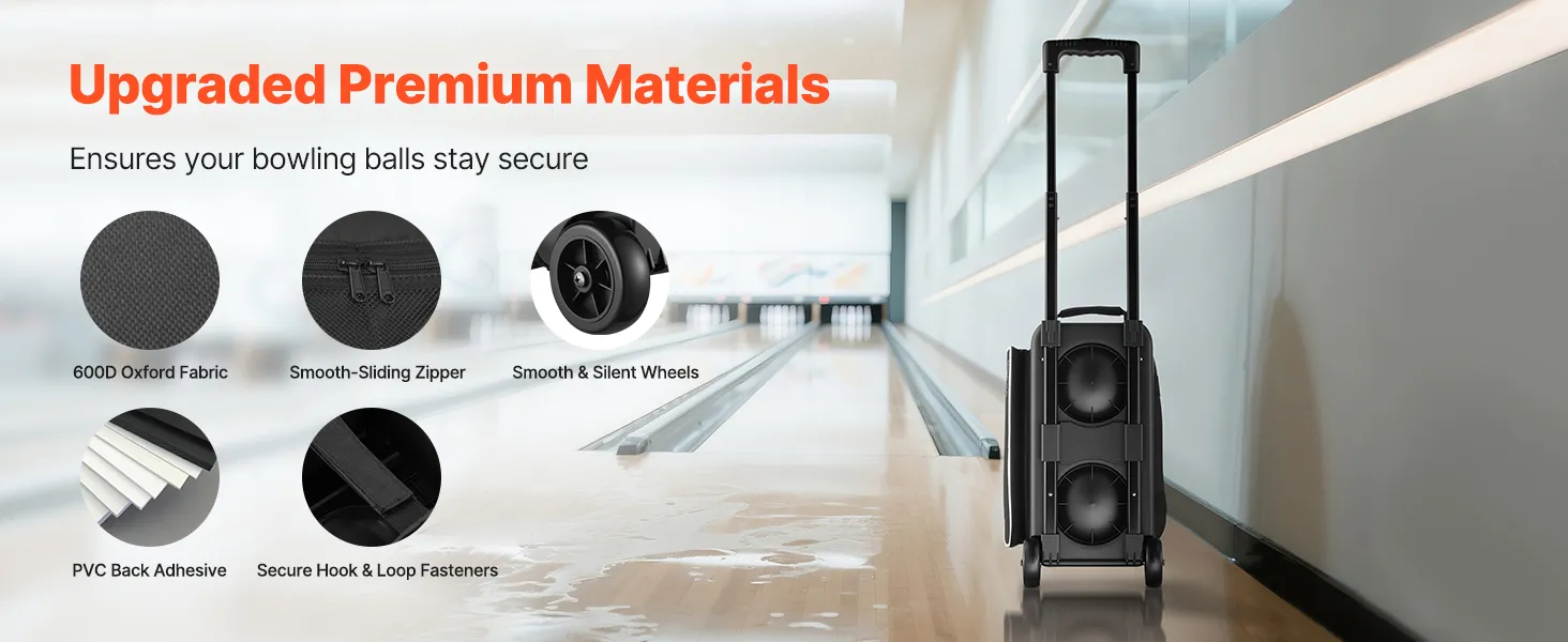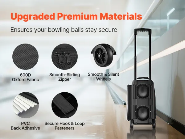 Wytrzymały materiał: Ta torba do gry w kręgle wykonana jest z tkaniny Oxford 600D z powłoką PVC i posiada od spodu panel z polietylenu o grubości 5 mm, odporny na uderzenia. Wzmocnione szwy i metalowe zamki zapewniają trwałość podczas częstego użytkowania i transportu na duże odległości.