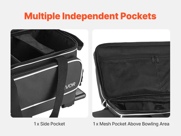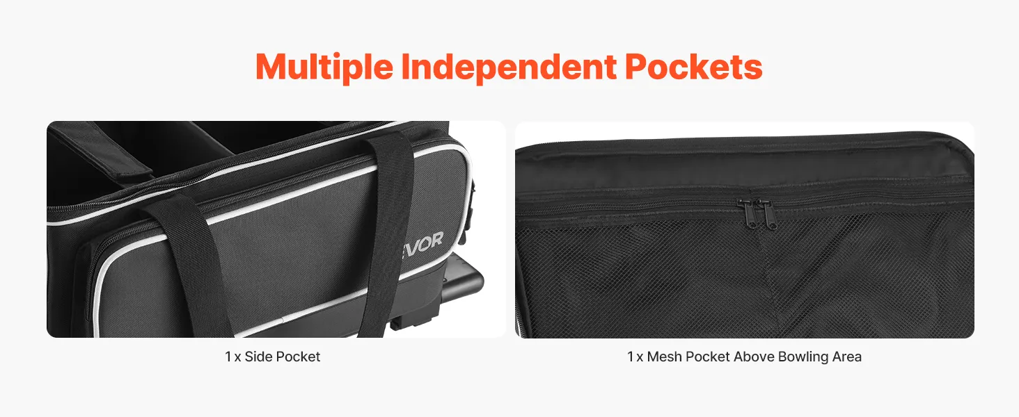 Ta torba do kręgli na kółkach posiada wiele kieszeni: jedną boczną i jedną z siatki nad powierzchnią do gry w kręgle. Regulowana przegroda z polietylenu ułatwia przechowywanie.