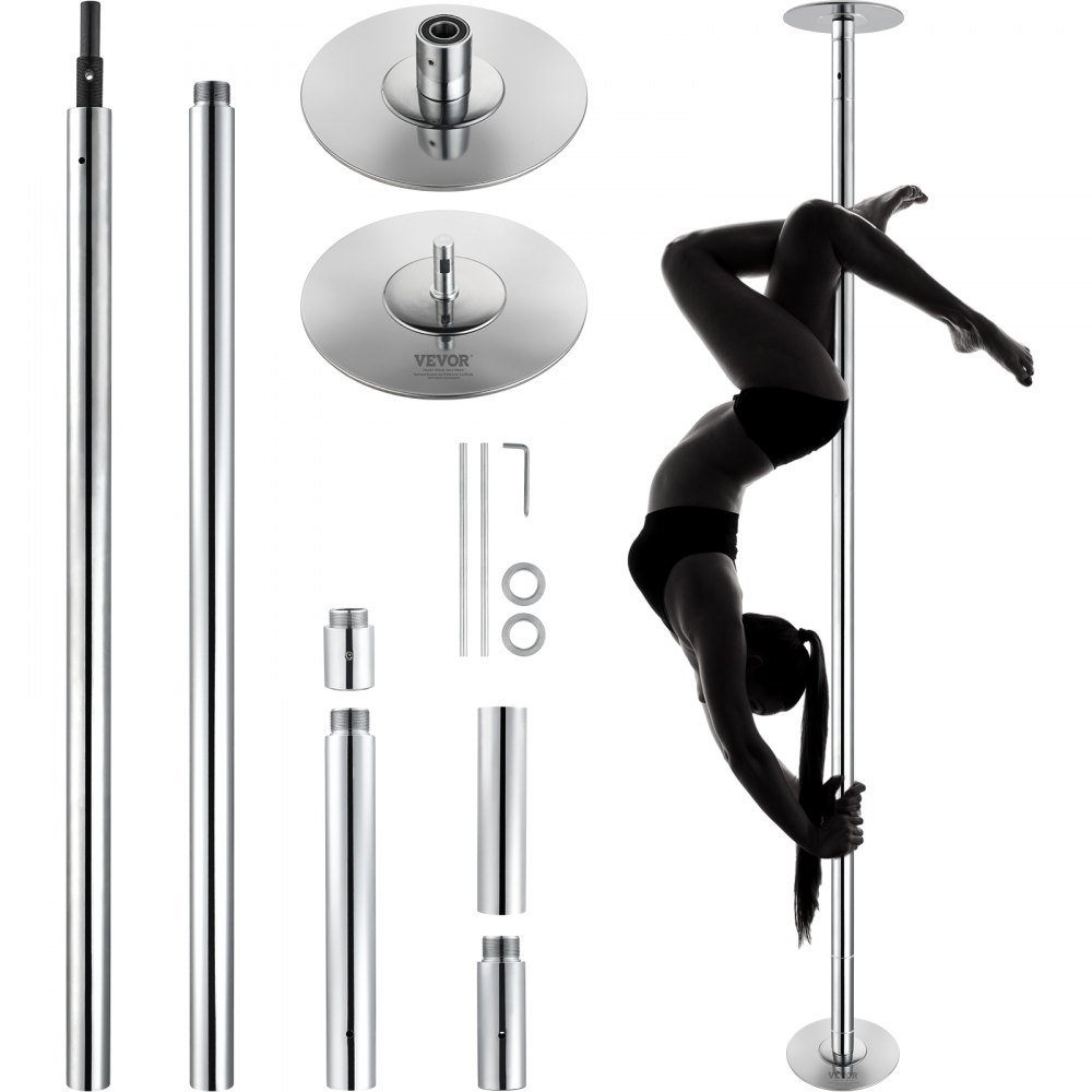 VEVOR Professional Dance Pole, Portable Pole Dance Pole, Professional, Approx. 210.5-278.4 cm, Height Adjustable, Detachable Fitness Pole, Spinning Fitness, Silver, Dance Pole for Gyms, Clubs, and Parties