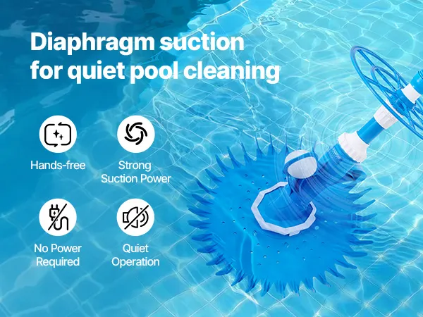 Oszczędność czasu: Ten odkurzacz basenowy nie wymaga prądu – wystarczy podłączyć go do pompy basenowej, a automatycznie wyczyści basen. Pożegnaj się z godzinami schylania się i ręcznego szorowania – czyszczenie basenu stanie się dziecinnie proste. Uwaga: Dla optymalnej wydajności wymagana jest pompa basenowa o mocy co najmniej 3/4 KM lub 1600 GHP.