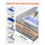 Połączenie czyszczenia na sucho i na mokro: Wyposażony w bawełnianą nakładkę z frędzlem oraz dwie nakładki z mikrofibry, ten mop ze spryskiwaczem umożliwia czyszczenie zarówno na sucho, jak i na mokro. Bawełniana głowica z frędzlem zapewnia wysoką chłonność podczas mycia na sucho, a głowice z mikrofibry wychwytują drobny kurz i brud podczas mycia na mokro. Nadaje się do podłóg drewnianych, laminowanych, płytek, marmuru i innych – dokładnie czyści, jednocześnie pielęgnując podłogi.
