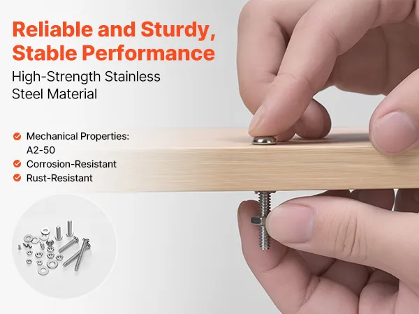 Precyzyjne wykonanie: Każdy element jest precyzyjnie obrabiany, aby zapewnić parametry mechaniczne klasy A2-50. Po 48-godzinnym teście w mgle solnej, śruby i nakrętki zapewniają niezawodne mocowanie i nie poluzują się ani nie zniszczą z upływem czasu.