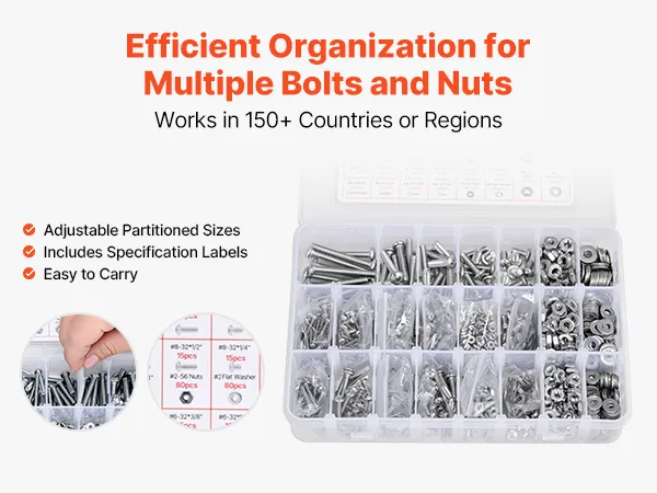 Dzięki szerokiemu wyborowi śrub, nakrętek, podkładek i innych elementów w różnych rozmiarach, zestaw ten zapewnia solidne połączenia różnych materiałów, ułatwiając dobór odpowiednich części do konkretnych zadań.