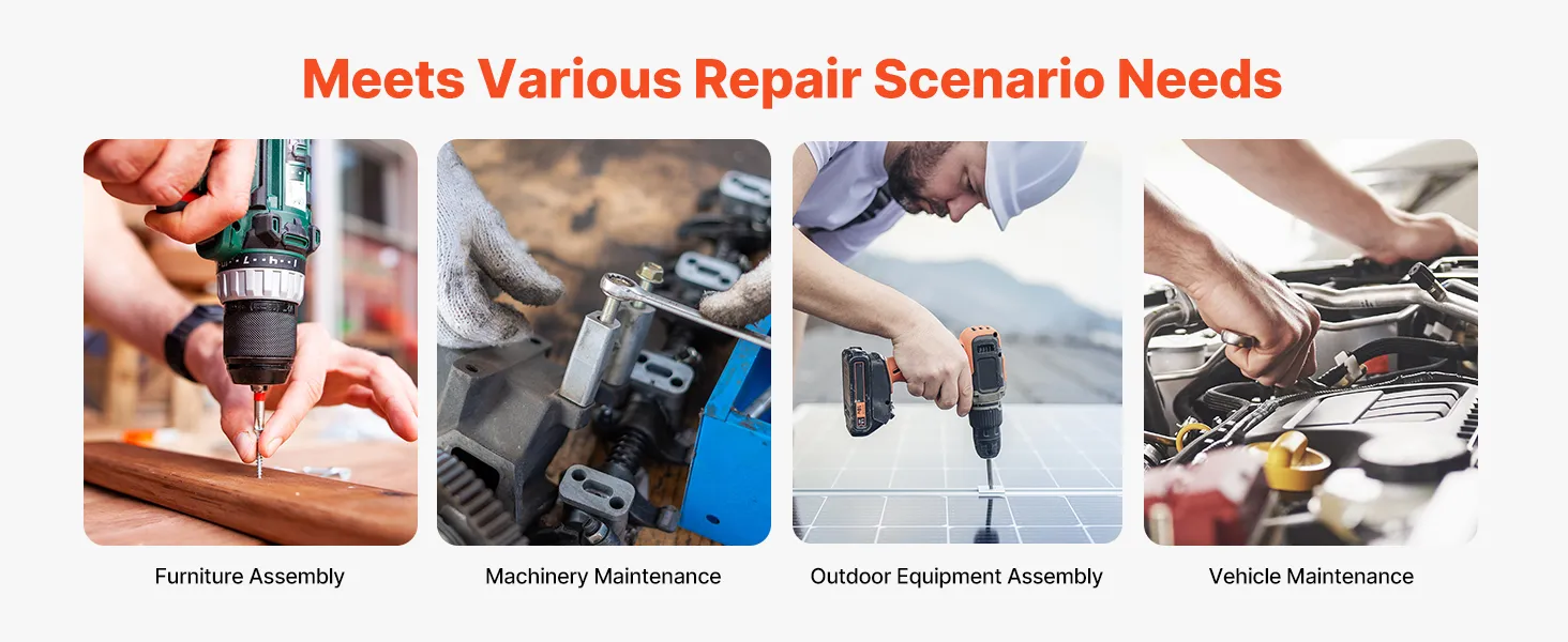 Wszechstronny: Idealny do napraw domowych, projektów DIY i prac konserwacyjnych, takich jak montaż mebli, naprawa pojazdów i naprawa instrumentów. Niezbędny w Twojej skrzynce narzędziowej.