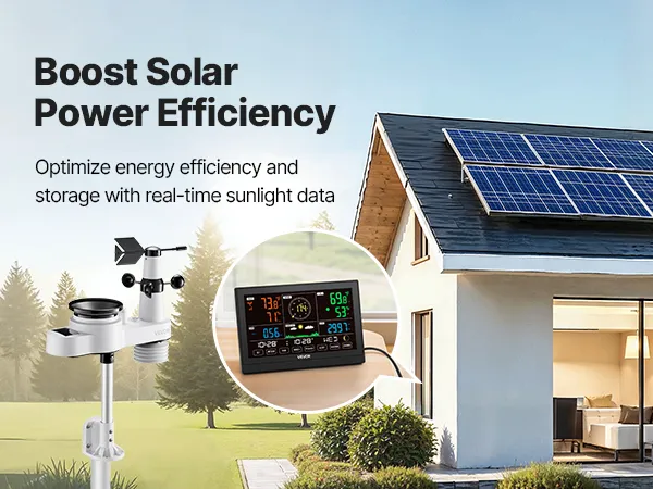 Zasilana energią słoneczną, trwała: Wysoce wydajne panele słoneczne pochłaniają energię słoneczną w ciągu dnia i ładują akumulator w nocy, zmniejszając koszty energii. Nasza cyfrowa stacja pogodowa jest wyposażona w solidny uchwyt ze stopu aluminium, zapewniający długotrwałe użytkowanie.
