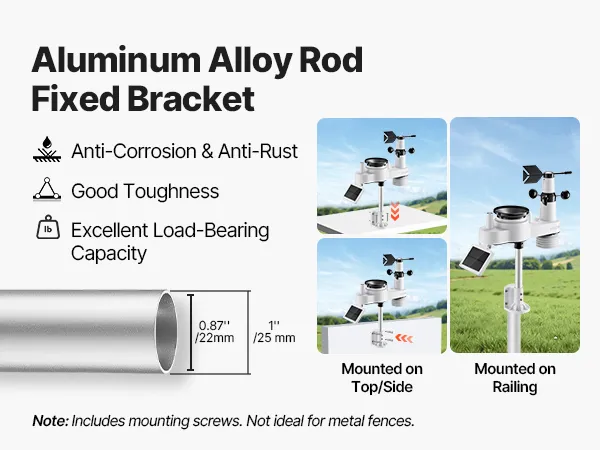 Duży zasięg transmisji: Czujnik zewnętrzny ma zasięg transmisji 150 m i idealnie nadaje się do stosowania na dachach, w ogrodach i na farmach. Unikaj umieszczania go w pobliżu telewizorów, masztów, linii energetycznych i innych źródeł zakłóceń. Nie nadaje się do montażu na metalowych ogrodzeniach.