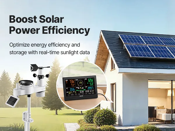 Zasilana energią słoneczną, trwała: Wysokowydajne panele słoneczne pochłaniają energię słoneczną w ciągu dnia i ładują akumulator w nocy, zmniejszając koszty energii. Nasza cyfrowa stacja pogodowa jest wyposażona w solidny uchwyt ze stopu aluminium oraz etui ładujące.