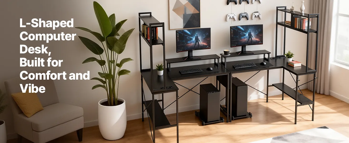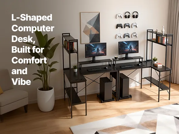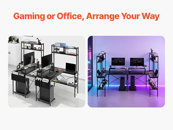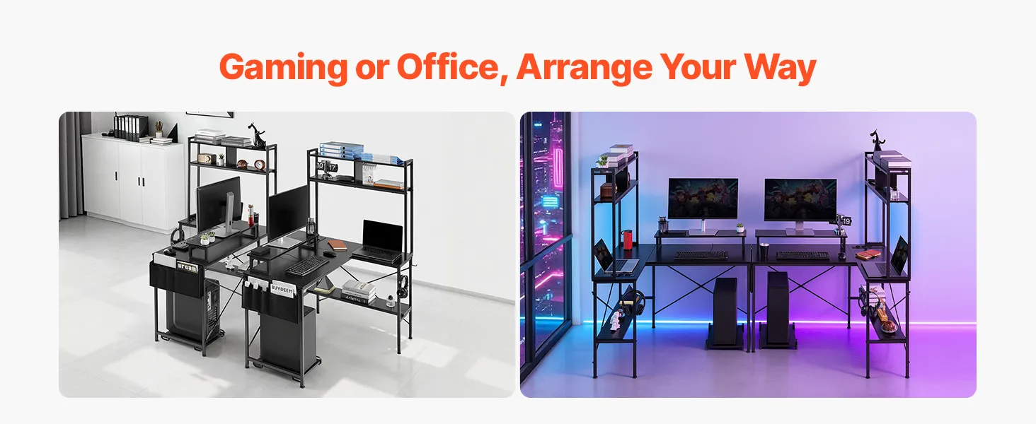 Rewersyjne biurko w kształcie litery L: Zmaksymalizuj przestrzeń w narożniku dzięki rewersyjnemu biurku gamingowemu w kształcie litery L od VEVOR. Dzięki dwóm opcjom montażu, biurko z łatwością dopasowuje się do różnych układów pomieszczenia i idealnie sprawdza się jako biurko gamingowe, komputerowe lub stanowisko pracy w domowym biurze.