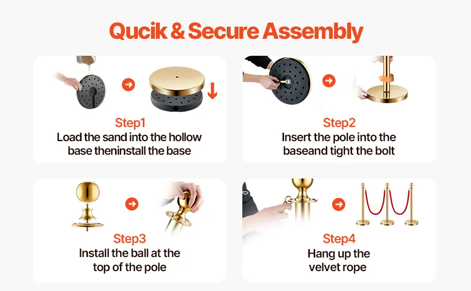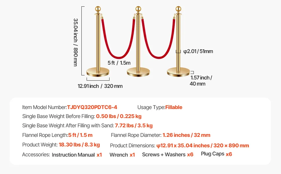Szybki montaż: Wystarczy przykręcić podstawę, wypełnić ją piaskiem i już możesz używać swojej aksamitnej liny do kontrolowania tłumów. Łatwy w konfiguracji i jeszcze łatwiejszy w użyciu, kiedykolwiek go potrzebujesz