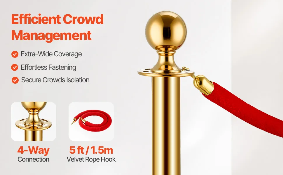 Niezawodna kontrola tłumu: Wykonany z trwałej stali nierdzewnej 201 słupek umożliwia skuteczną separację i kontrolę tłumu. Niezależnie od tego, czy jest to wesele, muzeum czy impreza, jest to rozwiązanie, które pomoże Ci uporządkować pomieszczenia i utrzymać porządek