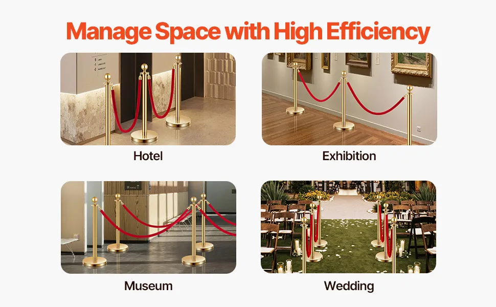 Przenośny i wszechstronny: Niezależnie od tego, czy chcesz kontrolować tłum w hotelu, na wystawie czy weselu, ten zestaw słupków odgradzających został zaprojektowany z myślą o wszechstronności. Doskonale nadaje się do kierowania ludźmi, wyznaczania jasnych granic lub spontanicznego dostosowywania przestrzeni