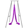 fioletowy pas do jogi VEVOR do inwersji, zawieszony na solidnej srebrnej ramie.