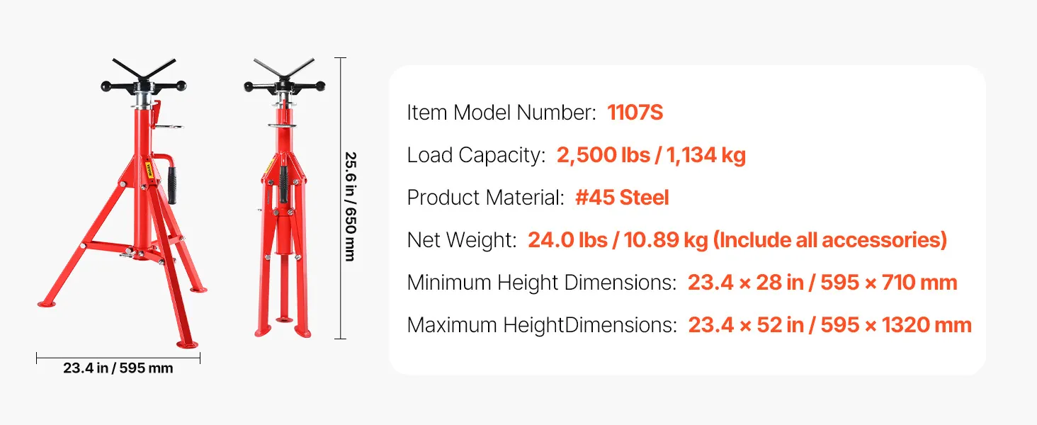 Wysoka nośność stojaka na rury ze stali węglowej VEVOR zapewnia, że poradzi sobie on z wymagającymi zadaniami. Zapewnia stabilne podparcie dla rur, belek i innych ciężkich materiałów. Konstrukcja z głowicą w kształcie litery V zapewnia bezpieczne umieszczenie rur i innych przedmiotów. Zwiększa to bezpieczeństwo podczas użytkowania. Nasz stojak to niezawodne narzędzie do różnych ciężkich zastosowań. Nośność 2500 funtów sprawia, że nadaje się do każdego miejsca pracy. Z łatwością poradzisz sobie z trudnymi zadaniami. Tak więc, sprawdza się również w różnych ustawieniach.