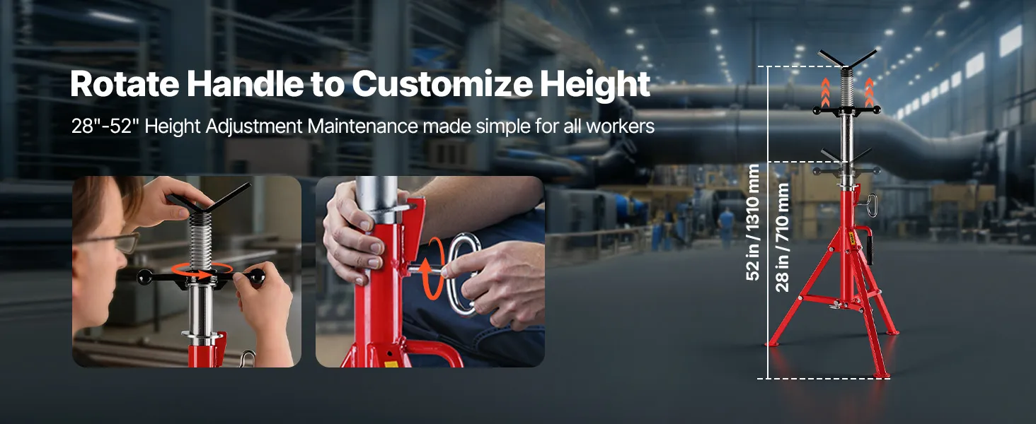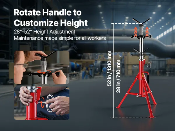 Statyw do rur z głowicą V VEVOR to wytrzymałe i regulowane narzędzie. Może utrzymać do 2500 funtów. Wysokość waha się od 28 do 52 cali. Ta elastyczność sprawia, że idealnie nadaje się do różnych zadań. Używaj go jako podpory do pojazdów lub w warsztacie tekstylnym. Nasza konstrukcja z głowicą V zapewnia stabilne podparcie dla rur o różnych średnicach. Wykonany z wytrzymałej stali zapewnia długotrwałą wydajność. Jego solidna konstrukcja zapewnia, że wytrzymuje duże obciążenia. Statyw jest łatwy w regulacji, dzięki czemu nadaje się do różnych zastosowań. Stojak na rury VEVOR V head warto mieć w każdym warsztacie, ponieważ został zaprojektowany do łatwego wykonywania trudnych zadań. Jego solidna podstawa zwiększa stabilność. Dzięki temu możesz bezpiecznie korzystać ze stojaka. Możesz użyć funkcji regulacji, aby dostosować go do różnych potrzeb. Dlatego polecamy go jako doskonałe narzędzie do wielu projektów.