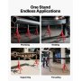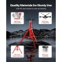 Stojak na rury VEVOR w ustawieniu fabrycznym z zamontowaną czarną i czerwoną rurą. Maksymalna wysokość 52 cali.