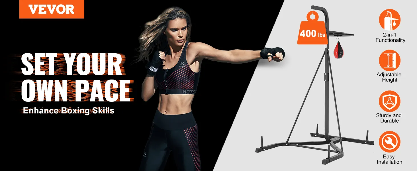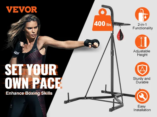 Stojak na worek bokserski 2 w 1 VEVOR to wszechstronny i wytrzymały sprzęt do każdej domowej siłowni. Stojak ten jest przeznaczony do podtrzymywania zarówno ciężkich worków, jak i worków treningowych, dzięki czemu jest niezwykle wielofunkcyjnym narzędziem do ćwiczeń. Mocna stalowa konstrukcja zapewnia długotrwałe użytkowanie, nawet podczas intensywnych sesji treningowych. Dzięki maksymalnej ładowności 400 funtów stojak ten z łatwością poradzi sobie nawet z najcięższymi workami. Możesz przełączać się między różnymi typami worków, nie martwiąc się o sprzęt. Dlatego stanowi naprawdę wartościowy dodatek do domowej rutyny fitness. Nasz stojak zapewnia najwyższą stabilność podczas treningu. Dzięki temu możesz skupić się na swojej technice i sile, nie martwiąc się o to, co może pójść nie tak ze sprzętem.