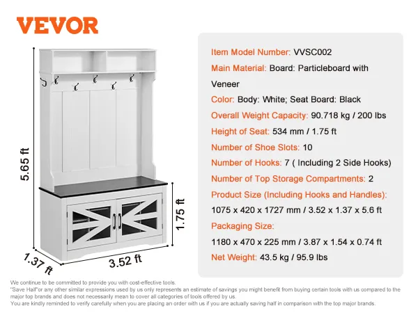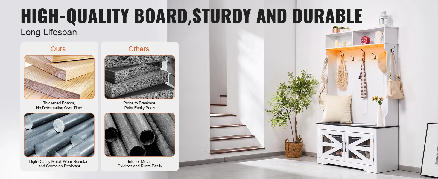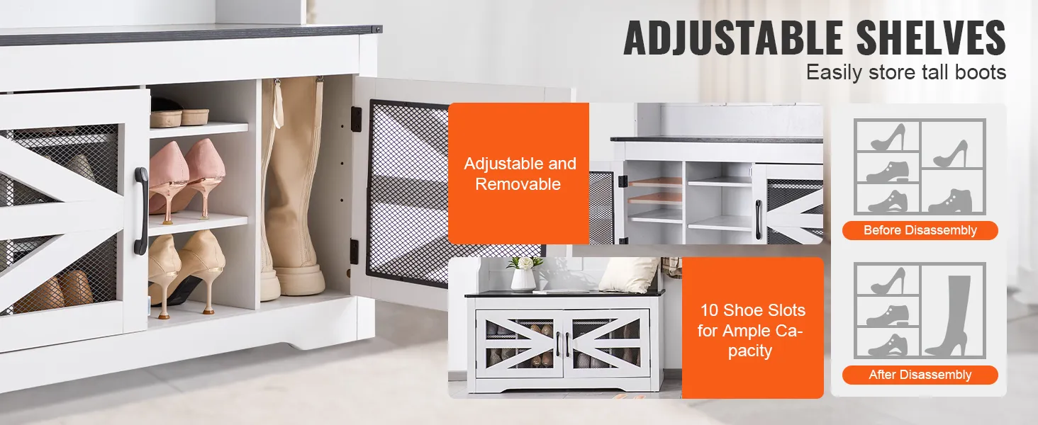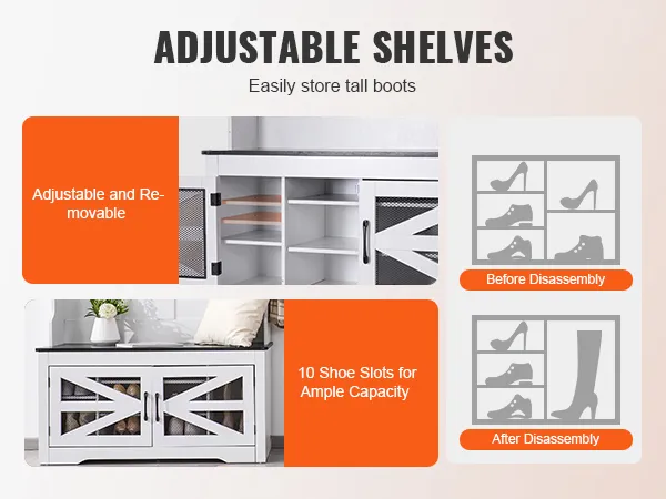 Przemyślane przechowywanie: Wieszak na ubrania VEVOR ułatwia organizację dzięki kompaktowej konstrukcji, która oszczędza miejsce. Regulowane i zdejmowane boki szafki na buty ułatwiają przechowywanie wysokich butów.