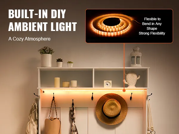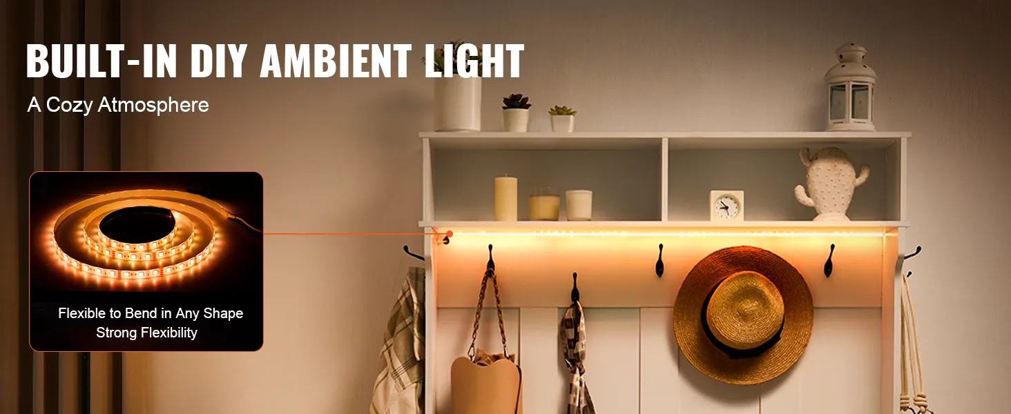 Stylowy i praktyczny: Ten biały wieszak na ubrania idealnie dopełni zarówno nowoczesny, jak i vintage'owy wystrój, dodając Twojej przestrzeni odrobinę uroku. Listwa świetlna zasilana przez USB tworzy przytulne światło, nadając przedpokojowi ciepły i zachęcający charakter.