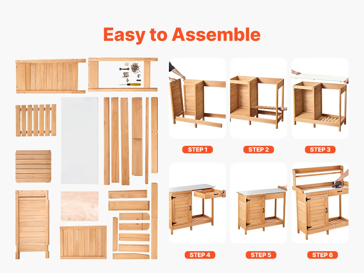 Nasz stolik do sadzonek jest dostarczany ze śrubokrętem i przejrzystą instrukcją – wystarczy postępować zgodnie z instrukcjami, a montaż zajmie 20–30 minut.