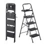 VEVOR 4-stopniowa składana drabina z tacką na narzędzia i wygodnym uchwytem, ​​drabina domowa, udźwig do 272 kg, drabina schodkowa, składany stołek, drabina bezpieczeństwa do kuchni, domu i biura, czarna