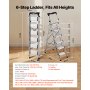 VEVOR 6-stopniowa składana drabina z antypoślizgowymi stopniami i wygodną rączką, drabina domowa o udźwigu 150 kg, aluminiowa drabina bezpieczeństwa do kuchni, magazynu, domu i biura, srebrna