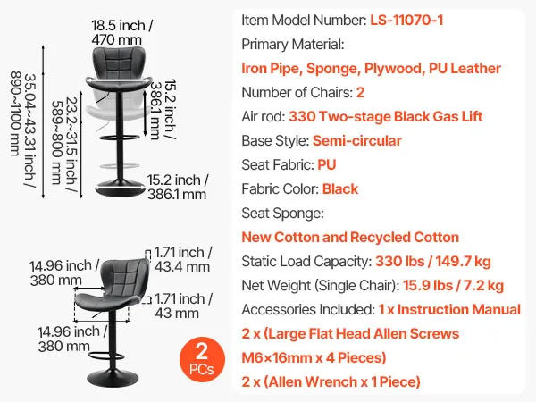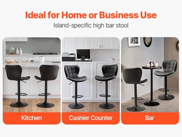 Praktyczny zestaw: Zestaw zawiera dwa hokery kuchenne o wymiarach 18,50 x 21,06 x 35,04 / 43,31 cala (470 x 535 x 890 / 1100 mm) i wysokości siedziska 23,2-31,5 cala (589-800 mm). Ten hoker barowy idealnie nadaje się do dwuosobowych gospodarstw domowych lub kuchni otwartych i można go z łatwością używać do spożywania posiłków, spotkań towarzyskich i pracy w biurze.