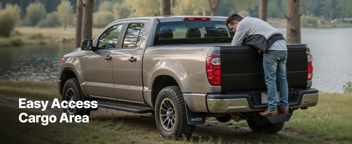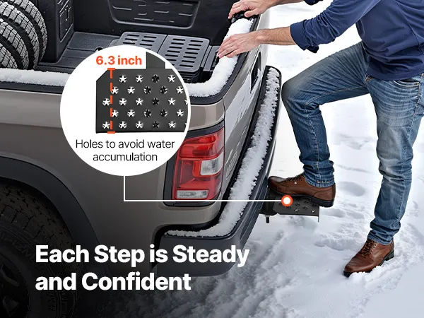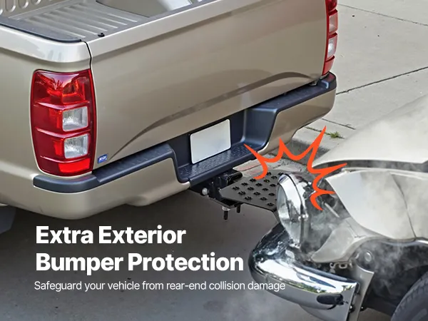 Zabezpieczenie: Stopień holowniczy zapewnia stabilność podczas wchodzenia na dach oraz wsiadania i wysiadania z pojazdu. Chroni również tylny zderzak przed zarysowaniami i uderzeniami, zmniejszając w ten sposób potencjalne uszkodzenia pojazdu i ryzyko obrażeń.