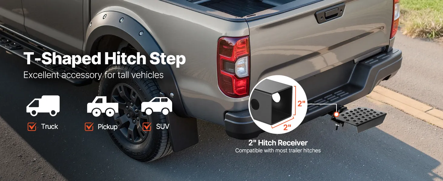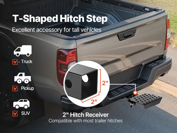 Uniwersalne dopasowanie: Stopień haka holowniczego można zamontować w dowolnym pojeździe wyposażonym w standardowy hak holowniczy o średnicy 2 cali (50,8 mm), takim jak pickupy, SUV-y, vany i kampery.