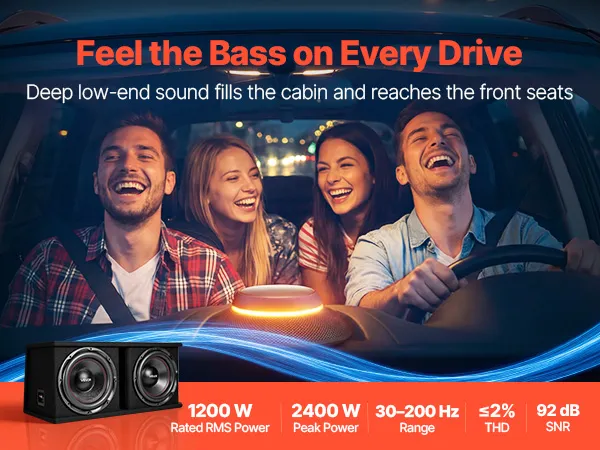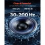 Wzmocnienie basów: Ten zestaw subwoofera i wzmacniacza zapewnia zauważalnie poszerzony zakres niskich częstotliwości i precyzyjny, immersyjny bas. System pracuje z mocą 1200 W RMS i pokrywa pasmo częstotliwości 30–200 Hz, skutecznie uzupełniając fabryczne systemy audio.