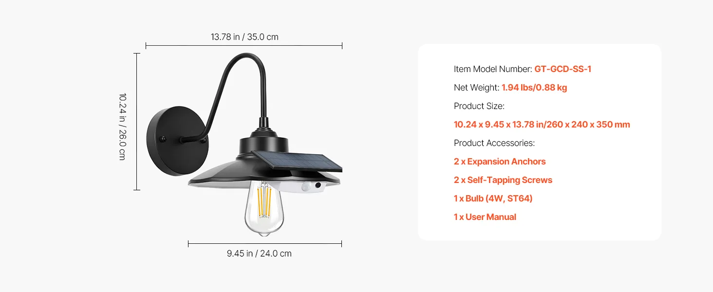 Wszechstronny styl do każdego wnętrza: Ta lampa solarna do stodoły ma klasyczny kształt gęsiej szyi, który dobrze komponuje się z wieloma stylami wystroju. Jej niewielkie rozmiary sprawiają, że z łatwością zmieści się na średnich i małych tarasach, werandach, garażach i innych powierzchniach.
