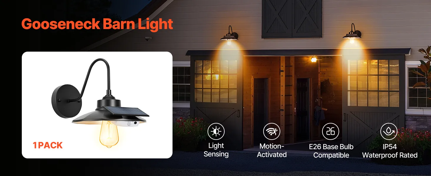 Inteligentne, energooszczędne oświetlenie: Ta zasilana energią słoneczną lampa ogrodowa do stodoły wyposażona jest w inteligentny czujnik, który reguluje jasność i włącza lub wyłącza światło w zależności od natężenia światła otoczenia i ruchu. Nie wymaga ręcznego sterowania, co zmniejsza niepotrzebne zużycie energii.