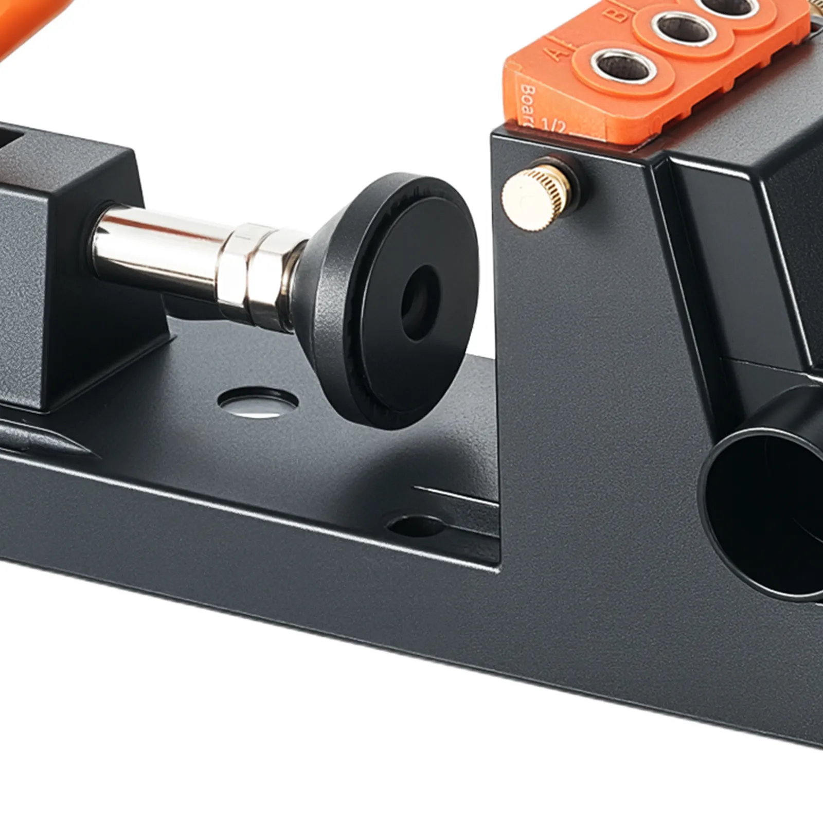 Ten przyrząd do wiercenia otworów kieszeniowych jest wyposażony w prowadnice wiertarskie wykonane z hartowanej stali węglowej, co gwarantuje precyzyjne i powtarzalne wiercenie otworów kieszeniowych.