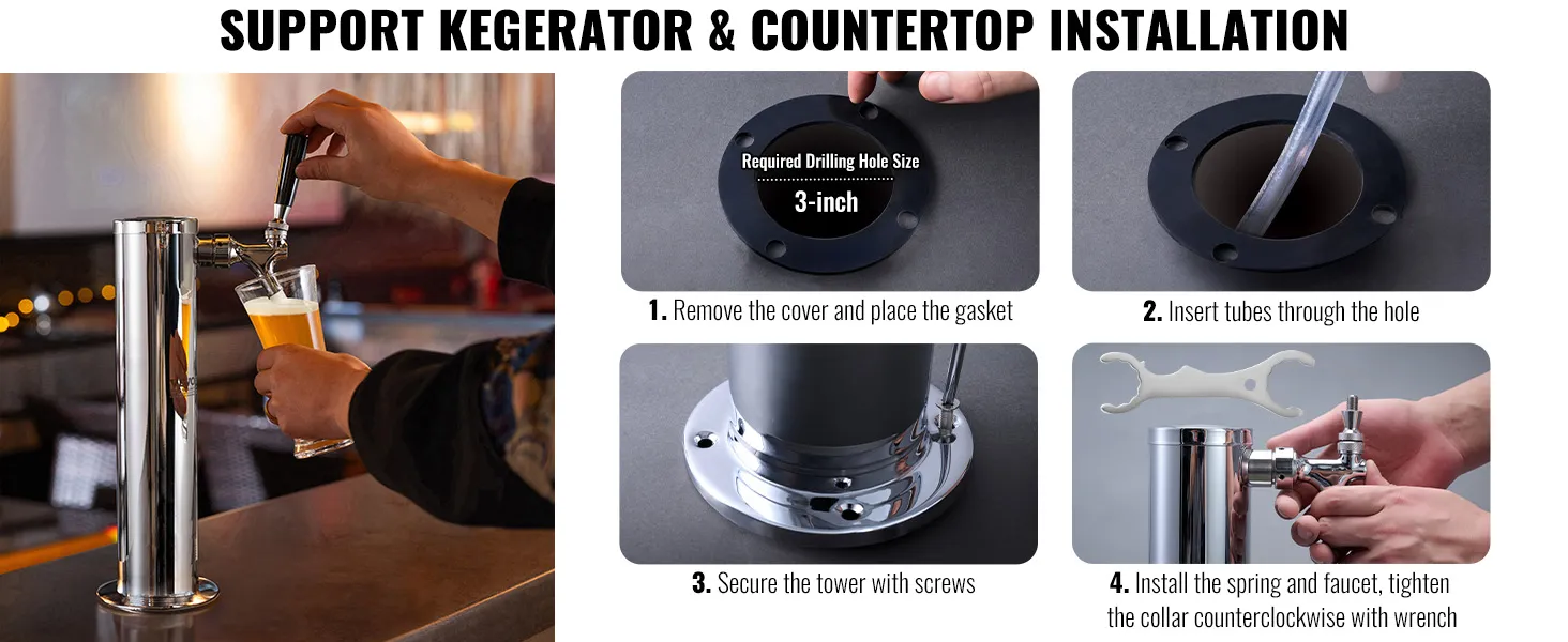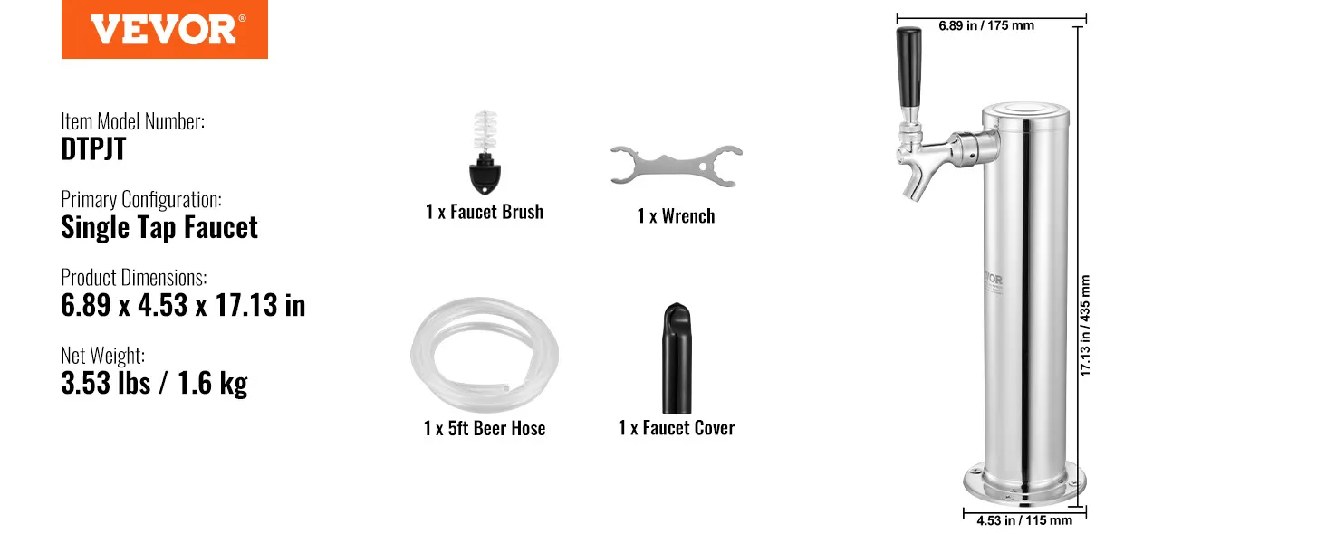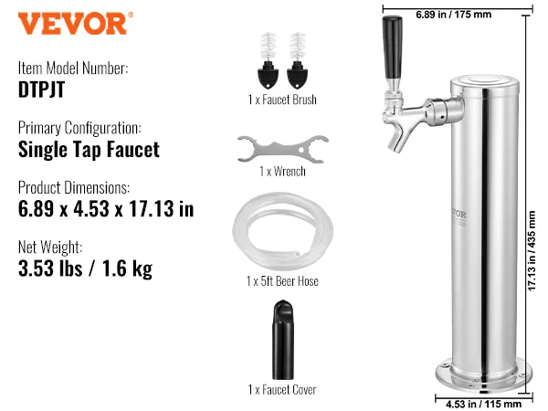 Dzięki temu idealnie nadaje się do różnych ustawień. Łatwa konfiguracja i konserwacja oszczędzają czas i wysiłek, dzięki czemu samozamykający się trzonek kranu VEVOR jest wygodnym wyborem. Możesz łatwo skonfigurować wstępnie zmontowaną rurkę do piwa i trzonek kranu, co ułatwia instalację. Nawet osoby, które dopiero zaczynają przygodę z systemami kegeratorów, mogą to zrobić z łatwością. Dołączona osłona kranu i szczotka sprawiają, że czyszczenie jest bezwysiłkowe. Dzięki temu dozownik pozostaje w doskonałym stanie. Nasza wszechstronna konstrukcja obsługuje zarówno instalacje wieżowe, jak i blatowe. Pozwala im również pracować w różnych ustawieniach. Łatwa konfiguracja i konserwacja oszczędzają pieniądze, dzięki czemu jest to ekonomiczna opcja.