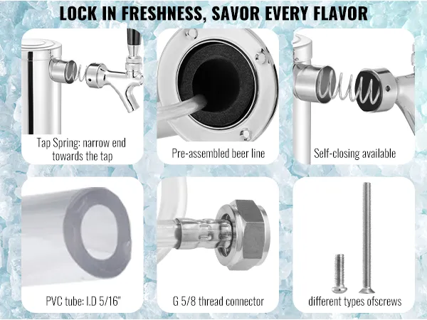Stalowa beczka do piwa VEVOR to prawdziwy przełom. Samozamykający się trzonek kranu to niezbędne narzędzie. Gwarantuje, że przypadkowe rozlanie i marnotrawstwo staną się przeszłością. Ta funkcja jest szczególnie przydatna w ruchliwych miejscach, takich jak imprezy i bary. Skutecznie i natychmiast zamyka kran, zapobiegając niepożądanemu przepływowi cieczy. 5-stopowy wąż PVC poprawia wydajność uszczelnienia, minimalizując utratę piwa. Dołączony zacisk węża zapewnia szczelne zamknięcie, dzięki czemu dozownik jest idealny zarówno do użytku domowego, jak i komercyjnego.