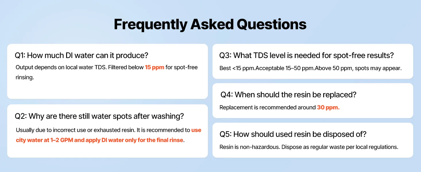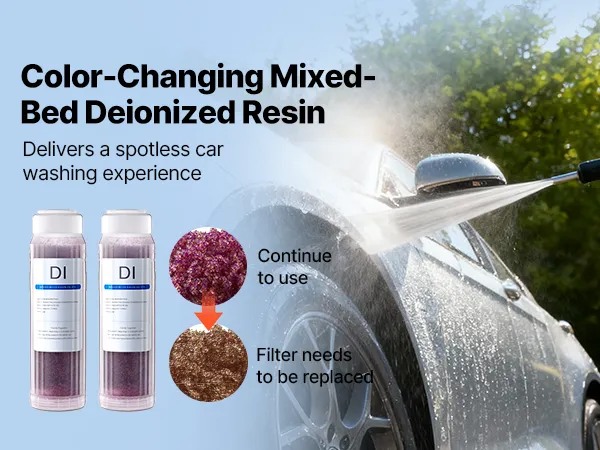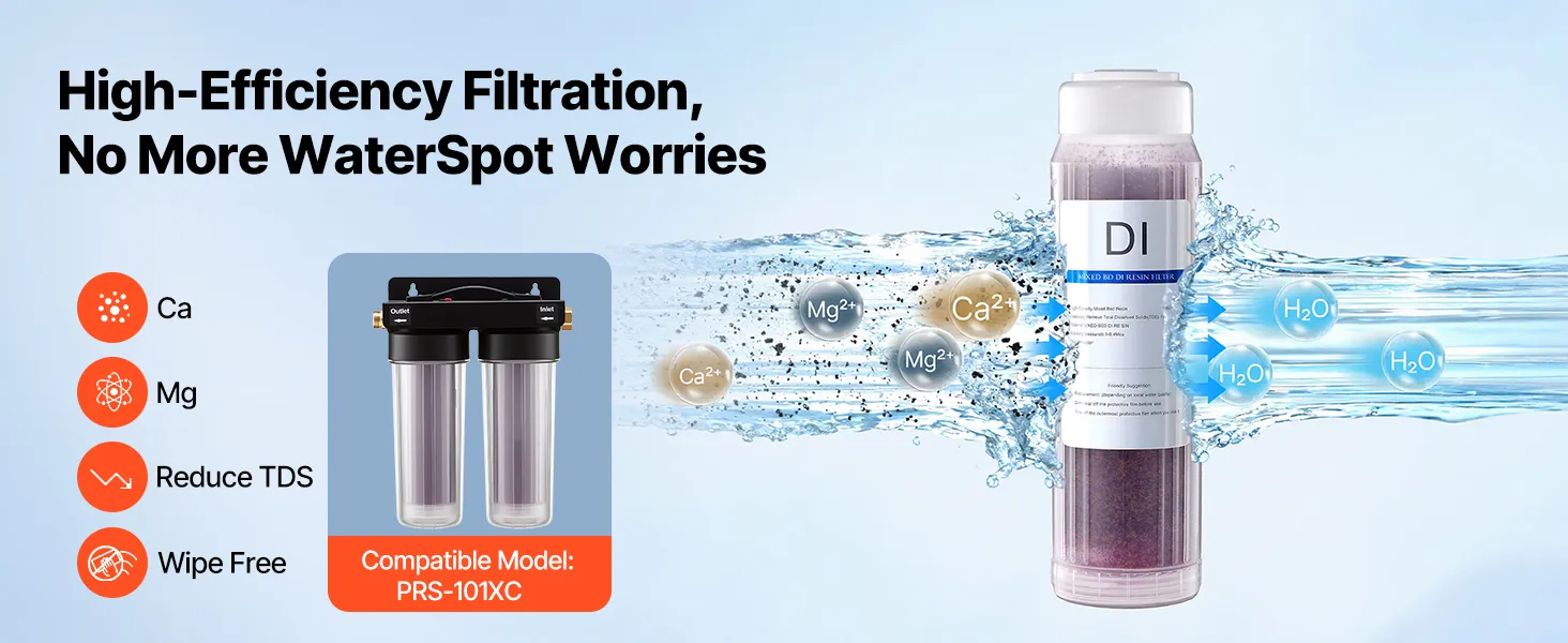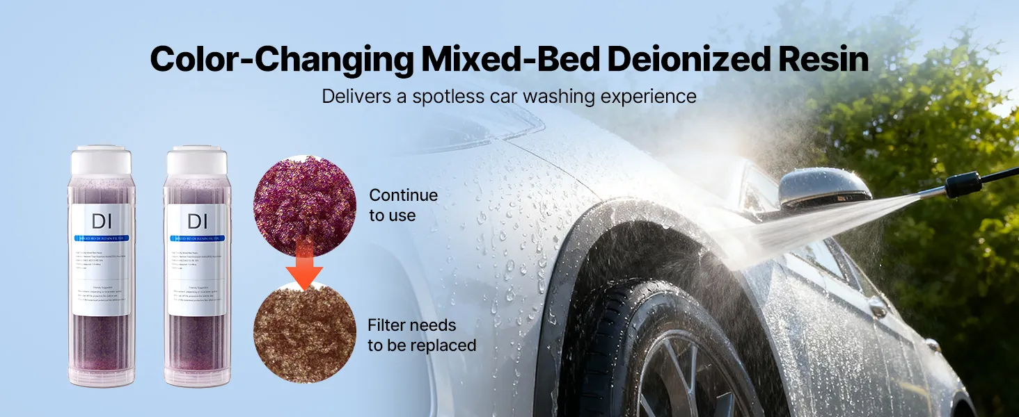 • Wyłącznie do naszego systemu dejonizacji: Ten zmieniający kolor filtr z żywicy DI jest kompatybilny z systemem dejonizacji VEVOR PRS-101XC i skutecznie usuwa zanieczyszczenia jonowe oraz TDS, zapewniając nieskazitelnie czyste mycie samochodu.
